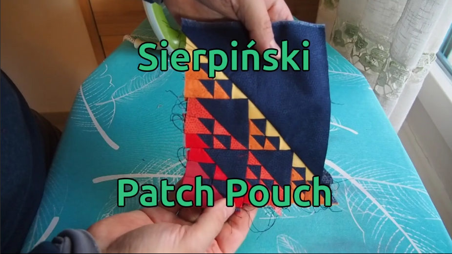 Petite pochette en patchwork avec un motif inspiré du triangle de Sierpinski.